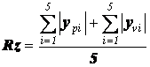 Высота неровностей профиля Rz равна среднему от суммы высот пяти наибольших выступов профиля и глубин пяти наибольших впадин профиля в пределах базовой длины (формула а).