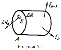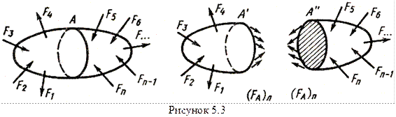 Допустим на тело действует некая система сил (рисунок 5.5). Рассмотрим в сечении А элементарную площадку