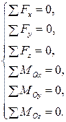 Усилия N, Qy, Qz, T, My, Mz называют силовыми факторами. Они определяются из 6 уравнений, вытекающих их условий равновесия: