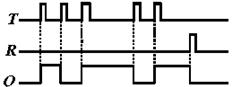 Временная диаграмма показывает, что изменение состояния выхода происходит при каждом поступлении переднего фронта импульса на вход триггера. Приведенный пример T -триггера снабжен дополнительным входом асинхронного сброса R, который устанавливает триггер в исходное нулевое состояние.