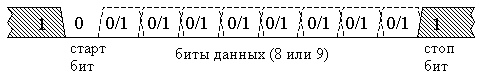 Формат кадра определяет число стоп-битов (1 или 2), число бит данных (8 или 9), а также назначение девятого бита данных. Все это зависит от типа контроллера.