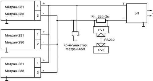 На рисунке 2.26 обозначено: БП – блок питания; PV 1 – HART -модем; PV 2 – компьютер.