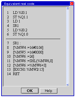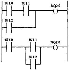 Первой инструкцией обязательно должна быть либо LD, либо инструкция безусловного перехода (JMP). Все инструкции (за исключением LD и JMP) используют булевский результат предыдущей инструкции.