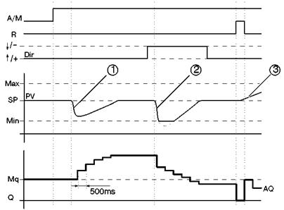 Если на входе A / M устанавливается 1, включается автоматический режим. В качестве интегральной суммы принимается значение Mq, и функция регулятора начинает вычисления.