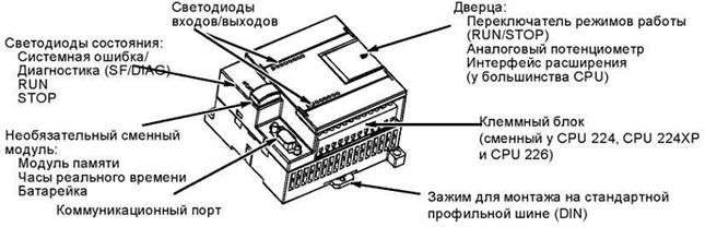 Конструктивно CPU S 7-200 состоит из микропроцессора, встроенного источника питания, входных и выходных цепей, находящихся в одном корпусе (рис. 6.1). После загрузки программы S 7-200 содержит необходимую логику для контроля и управления входными и выходными устройствами. Особенностью модели CPU 224 XP является встроенный аналоговый ввод / вывод и два коммуникационных порта.