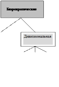 стран с перестраивающейся экономикой, показывает, что структура может стать «смирительной рубашкой» организации. К примеру, если пытаться стандартизировать и предписывать формы поведения в каких-то специфических условиях, а именно этого требует линейно-функциональная структура, то это принесет больше вреда, чем пользы. Такими специфическими условиями могут быть быстроменяющиеся технологии, или, что для нас более характерно, изменяющаяся конъюнктура рынка. Особая значимость стандартизированных правил и норм в такой ситуации не позволит адекватно реагировать на изменение потребностей потребителей. Если организация в своей деятельности исходит из идеи производства ради производства, то линейно-функциональная структура – идеальная форма для этого; если производители услуг и товаров ориентированы на интересы клиентов и покупателей в быстроменяющихся условиях, то линейно-функциональная структура потребует усовершенствования в направлении формирования дивизиональной структуры (рис.6).