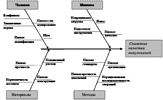 Логические модели представляют собой совокупность причин, объясняющих проблему предприятия, что позволяет принимать выверенные управленческие решения по устранению обозначенной проблемы. Примером логического моделирования является диаграмма Исикавы (рис.8).