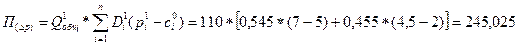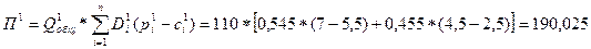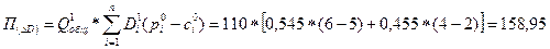 Прибыль от реализации продукции при изменении объемов производства и реализации составит: