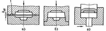 Рис. 33 Схемы штамповки в открытых и закрытых штампах: 1-облойная канавка