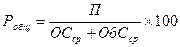 Рентабельность производства (общая) показывает отношение общей суммы прибыли к среднегодовой стоимости основных и нормируемых оборотных средств (величину прибыли в расчете на 1 руб. производственных фондов):
