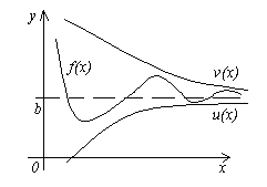 Теорема 4. Пусть даны три функции f(x), u(x) и v(x), удовлетворяющие неравенствам u (x)≤f(x)≤ v(x). Если функции u(x) и v(x) имеют один и тот же предел при x→a (или x→∞), то и функция f(x) стремится к тому же пределу, т.е. если