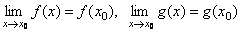 Доказательство. Так как функции f(x) и g(x) непрерывны в точке x0, то исходя из определения можно написать