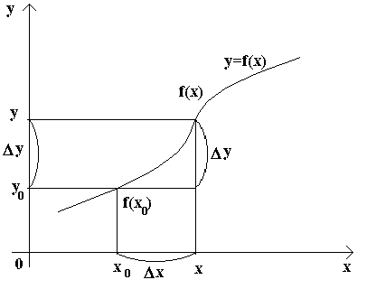 Обычно исходное значение аргумента x 0 считается фиксированным, а новое значение x – переменным. Тогда y 0 = f(x 0 ) оказывается постоянной, а y = f(x) – переменной. Приращения Δy и Δx также будут переменными и формула (1) показывает, что Δy является функцией переменной Δx.