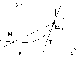Т.о., касательной к кривой в данной точке М0 называется предельное положение секущей М0М, когда точка М стремится вдоль кривой к точке М0.