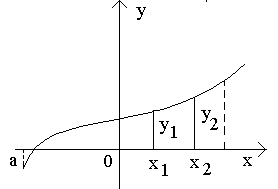 Пример. Пусть дана функция y = ex. Эта функция возрастает при –∞ < x <+∞. Она имеет обратную функцию x = ln y. Область определения обратной функции 0 < y < + ∞.