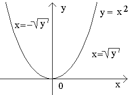 Пример. Функция y=x2 определена при –∞< x <+∞. Она не является ни возрастающей, ни убывающей и не имеет обратной функции. Однако, если мы рассмотрим интервал 0≤ x <+∞, то здесь функция является возрастающей и обратной для нее будет