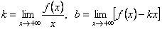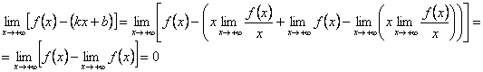 Докажем обратное утверждение. Предположим, что существуют пределы, определяющие числа k и b. Тогда несложно заметить, что выполняется равенство