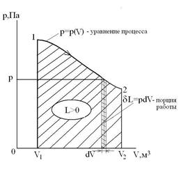Работа расширения положительна (L >0). Процесс, идущий с уменьшением объема ТС, называется процессом сжатия. Работа, затрачиваемая на сжатие газа, отрицательна (L <0).
