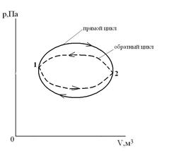 Прямой цикл – цикл тепловых двигателей, идущий в p-V координатах по часовой стрелке (линия расширения лежит выше линии сжатия). Обратный цикл – цикл холодильных установок и машин-орудий, идущий в