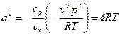 Из формулы (6) получим формулу для расчета скорости звука в идеальном газе при условии, что удельная газовая постоянная R не зависит от давления и температуры. Тогда из уравнения состояния для 1 кг идеального газа: