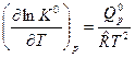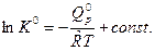 Соотношение (6) используется при аппроксимации констант равновесия К0 по температуре при расчетах и для экспериментального определения изобарного теплового эффекта химической реакции.