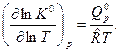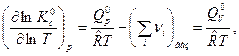 При экспериментальном определении теплового эффекта ХР Qp при различных температурах измеряют состав реагирующей смеси в состоянии равновесия и по нему рассчитывают парциальные давления pi. Затем по формуле