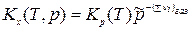 Для газообразных ТС константа равновесия ХР, выраженная через молярные доли, - Кх равна: