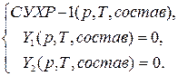 Последние два уравнения входящие в СУХР, используются в случае, если давление и температура являются неизвестными величинами. Вид их зависит от того, какие два независимые параметра заданы для рассматриваемой системы. Это - уравнения баланса независимых параметров, задаваемых для системы. При этом Y(р, Т, состав)= Z(р, Т, состав) – Zc=0. Здесь Zc – заданный параметр для системы.