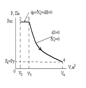 Q=0, dH =0)сгорания топлива в камере сгорания двигателя. Процесс 3-4 – адиабатно - изоэнтропийный процесс (