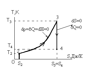 Процесс 2-3 изобарно – адиабатно - изоэнтальпийный процесс (dp =0,