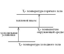 Окружающая среда является горячим телом в холодильных установках и холодным телом в тепловых насосах.