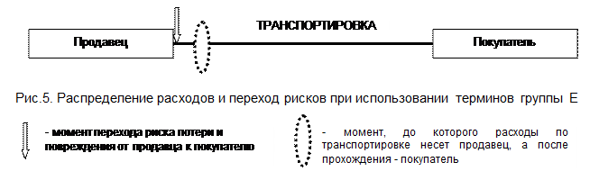 В данной группе терминов риск потерь и повреждений переходит в месте передачи товара от продавца к покупателю (рис. 6).