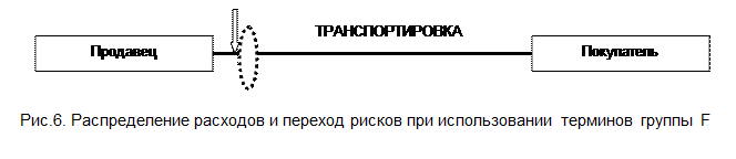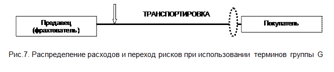 При использовании этих терминов продавец оплачивает основную транспортировку, а риск потерь и повреждений товара переходит к покупателю в месте погрузки (рис 7).