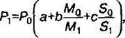 где Р1- окончательная цена товара; Ро - базисная цена, установленная в момент подписания контракта; Мо и М1 -базисная и окончательная цена на материалы; So и S1 - базисная и окончательная стоимость рабочей силы; а, в и с - выражают установленное в договоре процентное соотношение отдельных элементов первоначальной базисной цены (в сумме равны единице).