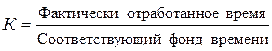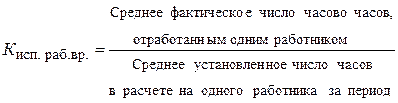 5. Коэффициентиспользования рабочего времени по числу часов, отработанных в среднем одним списочным работником за период (учитываются и целодневные, и внутрисменные потери рабочего времени):