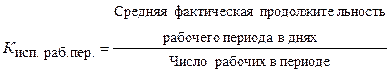 3. Коэффициентиспользования рабочего периода (или коэффициент использования рабочего времени)по числу дней работы одного списочного работника: