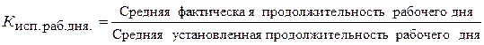 4. Коэффициентиспользования продолжительности рабочего дня (или коэффициент использования рабочего времени по продолжительности рабочего дня):