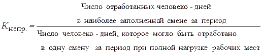 Коэффициент непрерывности (дает характеристику использования рабочих мест в наиболее заполненной смене):
