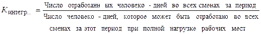 Разность между числителем и знаменателем данного коэффициента позволяет определить резервы рабочего времени в связи с неполной загрузкой рабочих мест во всех сменах.