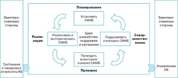 Международный стандарт ISO/IEC IS 27001 содержит модель непрерывного циклического процесса менеджмента ИБ организации (модель Деминга).