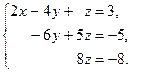 II. Найдём решение системы. Запишем систему уравнений, соответствующую полученной расширенной матрице: