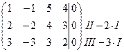 I. Исследуем систему на совместность. Запишем расширенную матрицу системы и приведём её к ступенчатому виду с помощью элементарных преобразований: