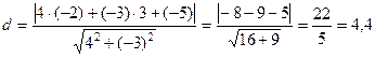 называется длина перпендикуляра, опущенного из этой точки на прямую и вычисляется по формуле: