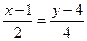 а) уравнением прямой в отрезках; б) общим уравнением прямой; в) каноническим уравнением прямой; г) уравнением прямой с угловым коэффициентом.