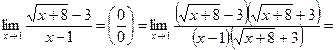 . Имеем неопределённость. Домножим числитель и знаменатель дроби на выражение, сопряжённое к числителю: