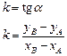 | Угловой коэффициент прямой, проходящей через две заданные точки А(x А, y А), В(x В, y В)