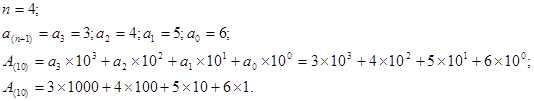 В общем случае для разложения по степеням основания числа, записанного в десятичной системе счисления выражение будет иметь следующий вид: