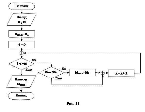 Рассмотрим процесс алгоритмизации на том же примере поиска максимального числа из последовательности из N чисел.