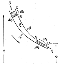 Уравнение Бернулли. Пусть рассматриваемые сечения трубки тока идеальной жидкости малы, так что можно считать величины скорости