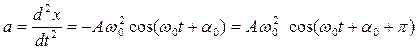 Как следует из (4.14) и (4.18), ускорение и смещение находятся в противофазе. Это означает, что в тот момент, когда смещение достигает наибольшего положительного значения, ускорение достигает наибольшего по величине отрицательного значения, и наоборот.
